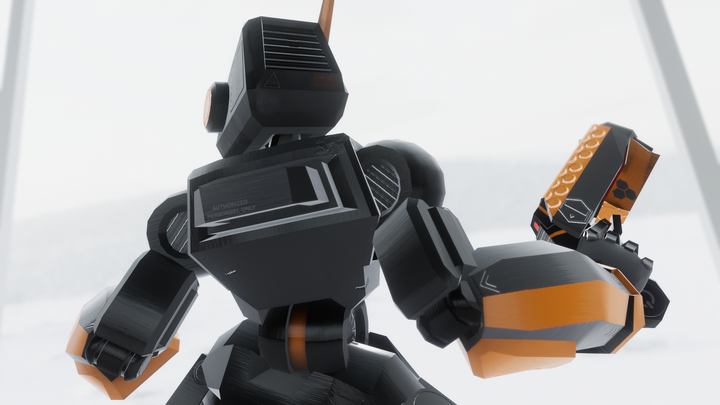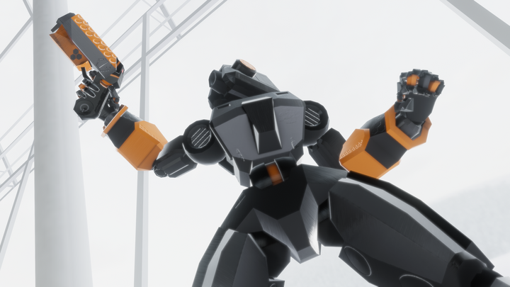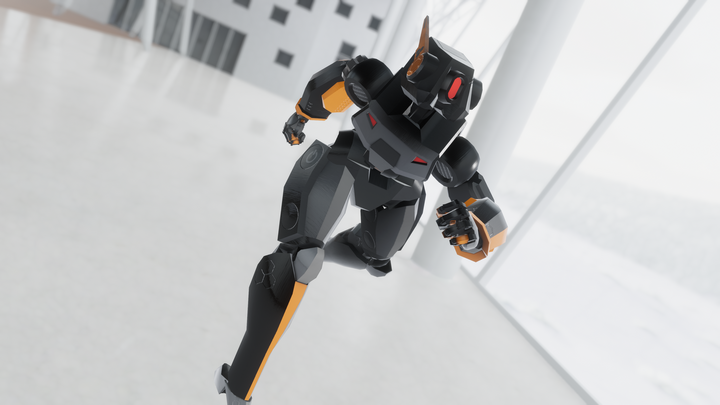 Fi-VR robot avatar, full body compatible, ▲ 9741 , Includes color sliders and gun object toggle, with particle shot and audio effect. Interactive pysbones in antenna, back and feet.